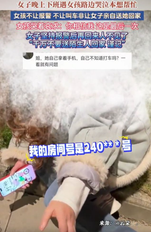 让女子没想到的是,听到她的声音后,女孩哭得更厉害了。女子见状,连忙安慰对方,还提出可以帮她报警,或者叫一辆网约车送她回家。可这些提议,都被女孩一口回绝了。