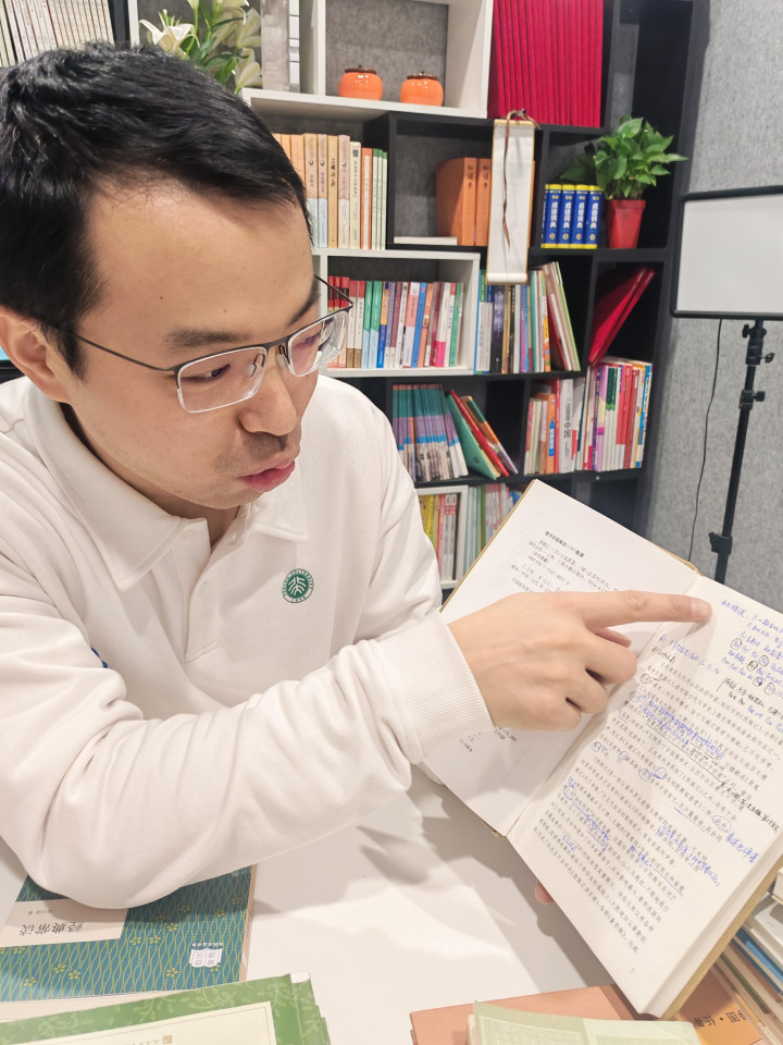 在网上连续发布挑错视频,让“一五老师”小有名气,“我叫它‘微红’”。但他坦承,这些都不是自己的目的。和过去一样,他的职业是教书,不是专门给书籍挑错,自己每天仍花费大量时间在阅读和直播教学上,“不能本末倒置。”