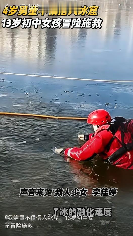 咱们回想一下当时的场景,大冬天的,冰面滑得站不住人,那是成年人看了都要腿软的地方。那个4岁的男童掉进冰窟窿里,随时可能被暗流卷走,周围要是没人,后果简直不敢想。李佳婷这个孩子,才13岁,换做一般的同龄人,碰到这种突发状况,恐怕第一反应是吓哭,或者大喊找大人。
