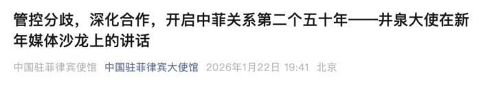 既然菲律宾带着诚意来了,中国自然也不会亏待他,我驻菲律宾大使发文称:中菲合作潜力巨大,中国把菲律宾当做朋友、邻居,中国的发展是机遇不是危险,在经贸合作方面是真心相助,不求回报。中国的朋友可以是美国的朋友,美国的朋友也可以是中国的朋友,菲律宾不需要选边站队,更不用依靠一方去对抗另一方,完全可以像其他东盟国家一样,同时与中美保持稳定关系,这最符合菲自身根本和长远利益。同时,如果有人说假话、对中方肆意抹黑、散布仇恨,我们不会保持忍耐和沉默,将毫不犹豫进行反击。